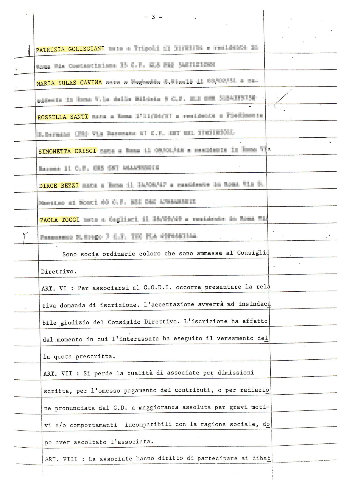 Sono commossa di esserci ancora e aver avuto la possibilità di rilasciare questi brevi cenni di quello che sono stati decenni di lotta, cui sono stata presente con estrema partecipazione.