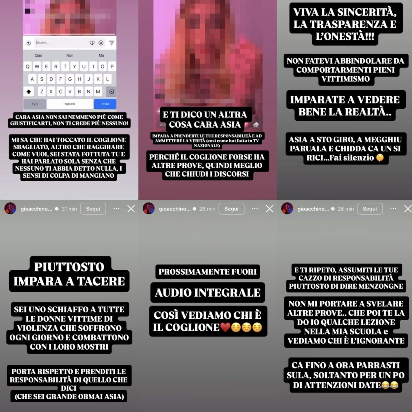 Sembra irreale ma è successo davvero, un carosello di stories dove la "invita" di tenere la bocca chiusa e continuare a fare “la brava”, come già fatto a Le Iene, perché altrimenti avrebbe fatto uscire altre prove. In calce gli screenshots, a futura memoria.